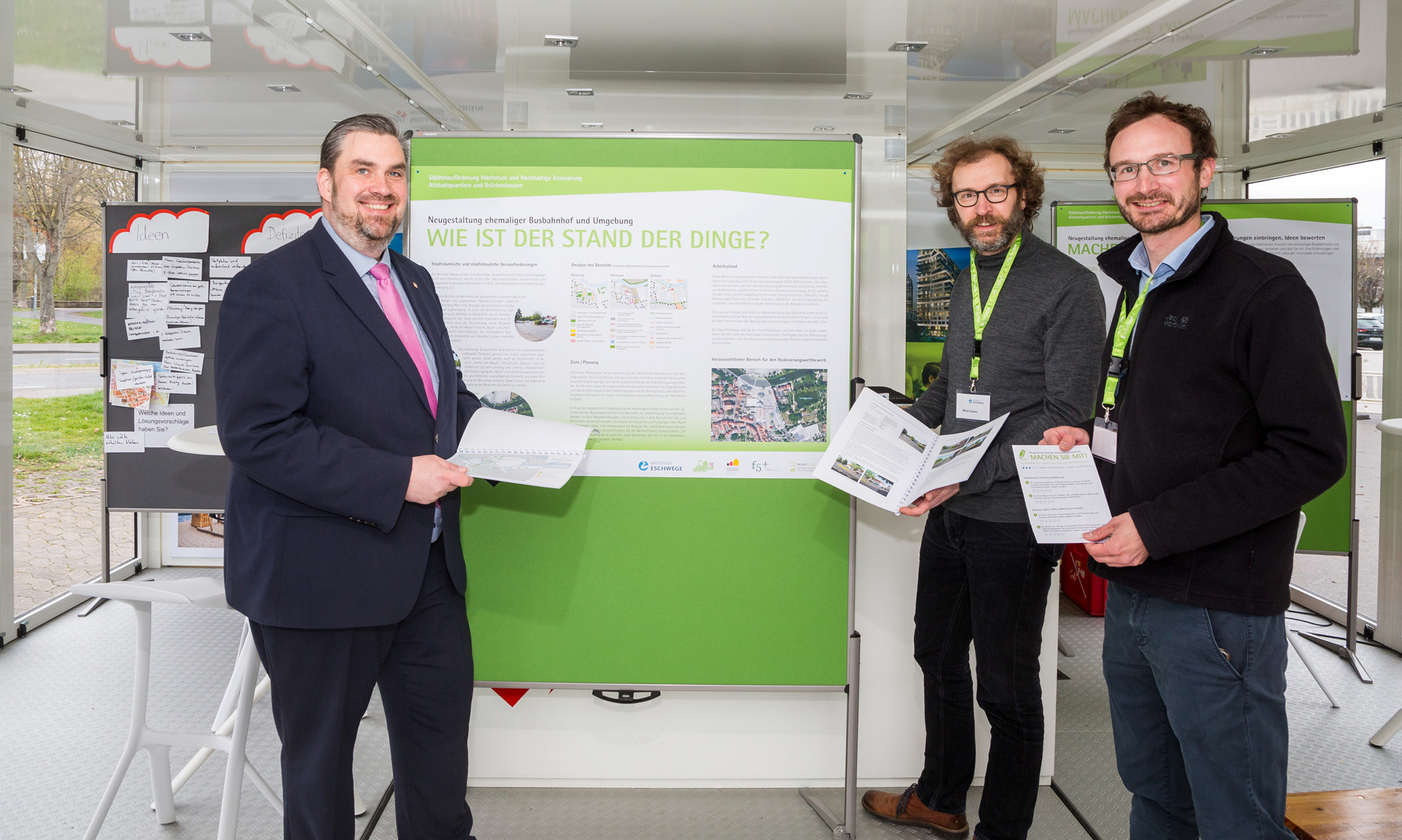 "Besserer Übergang für Fußgänger und Radfahrer". "Platz für kulturelle Veranstaltungen". "Grünfläche und Schattenplätze schaffen". Diese und viele andere Vorschläge verewigten die Bewohner der Kreisstadt Eschwege auf Moderationskarten und -wänden im Info-Cube der NHW. Hessens größtes Wohnungsunternehmen hat den Info-Würfel im Rahmen seines 100-jährigen Bestehens an mehreren Standorten im Einsatz. Anfang April nutzte ihn die Stadtentwicklungsmarke ProjektStadt in Eschwege.
