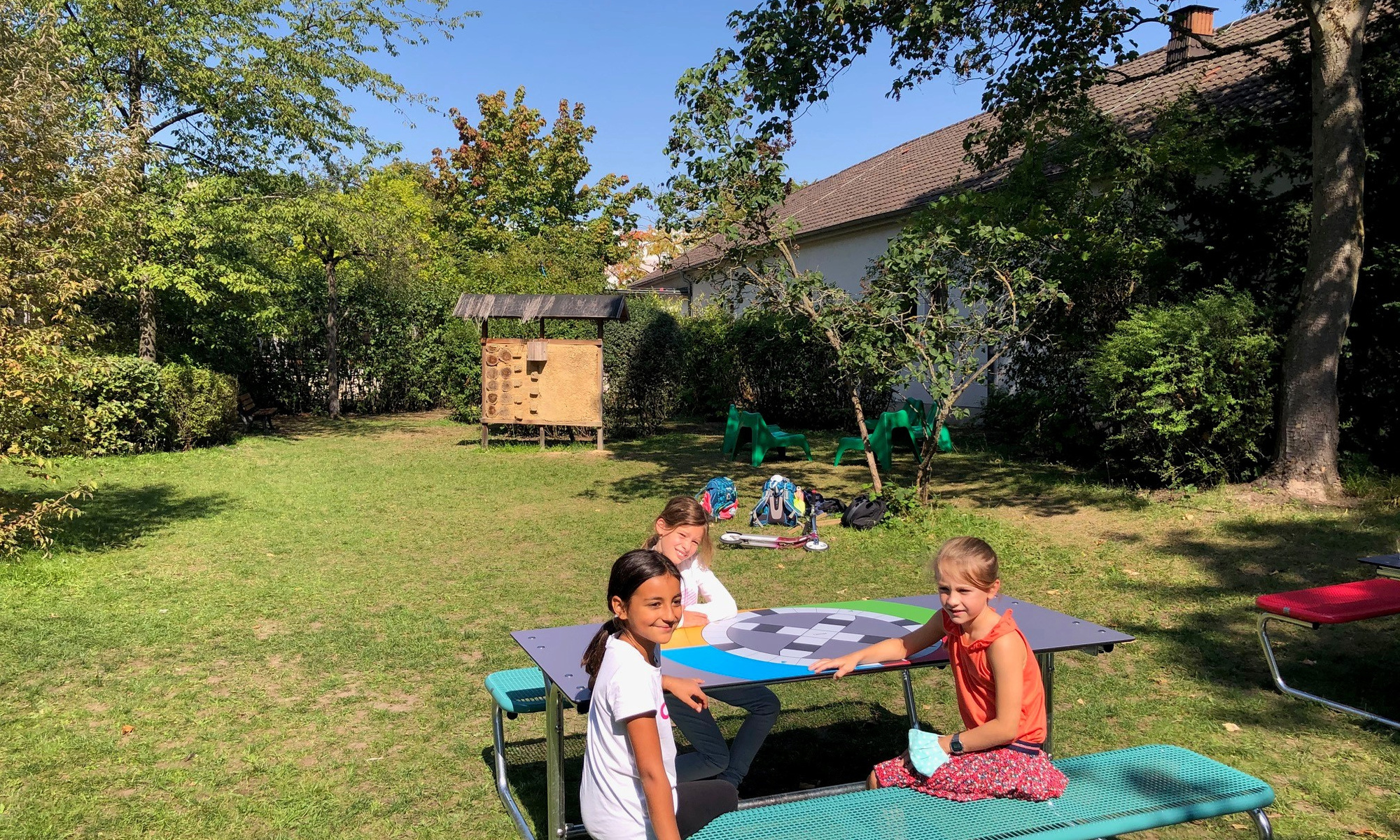 Von den 2.500 Euro sollte der bereits bestehende Schulgarten in der Heimatsiedlung mit Sitzmöglichkeiten und einem Sonnenschutz attraktiver gestaltet und für den Unterricht nutzbar gemacht werden. Das Ziel: Im "grünen Klassenzimmer" lernen die Schülerinnen und Schüler fächerübergreifend und unter freiem Himmel. "Die Bänke und Tische stehen und wurden schon intensiv genutzt, denn draußen kann man aktuell entspannter arbeiten", erklärt Nina Schrader vom Förderverein der Riedhofschule.