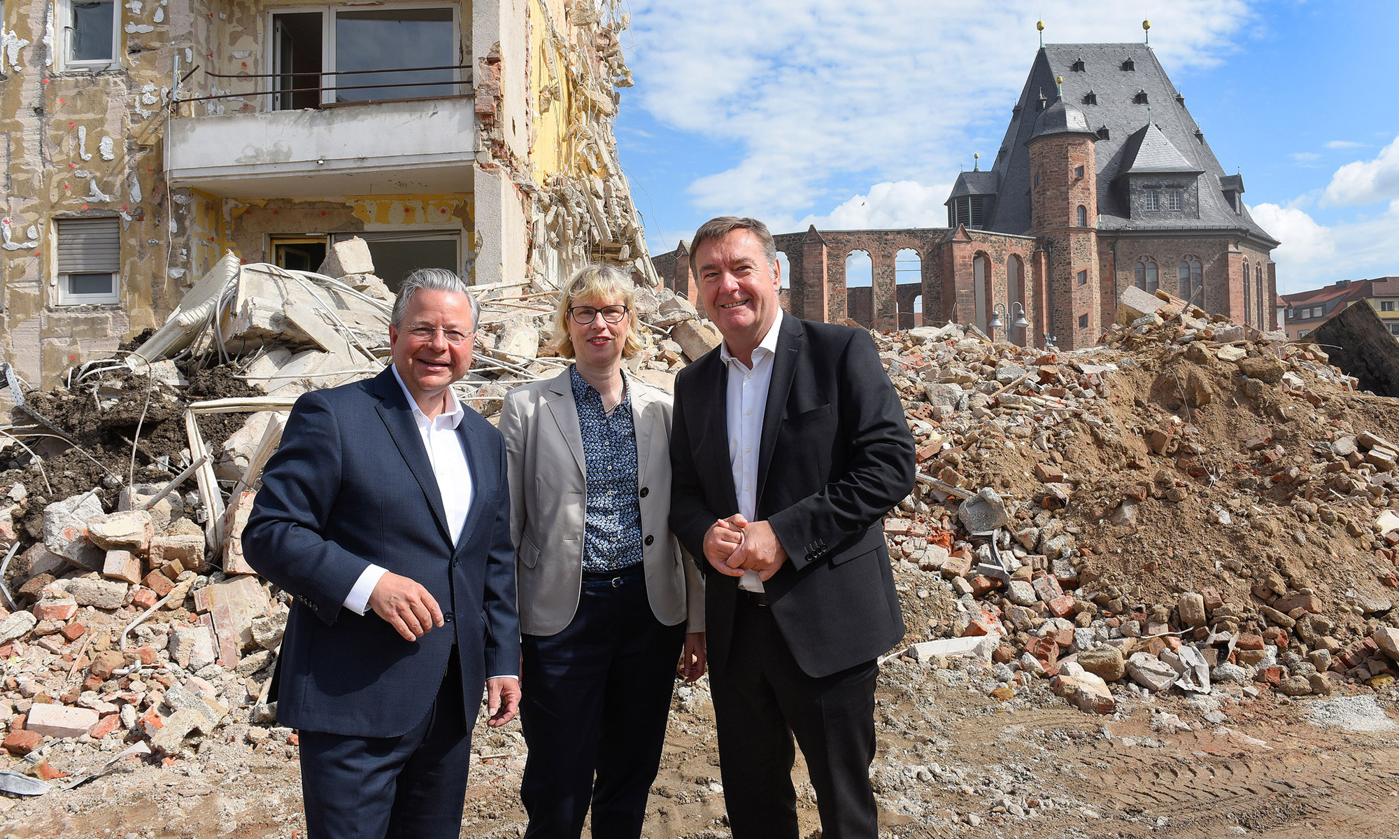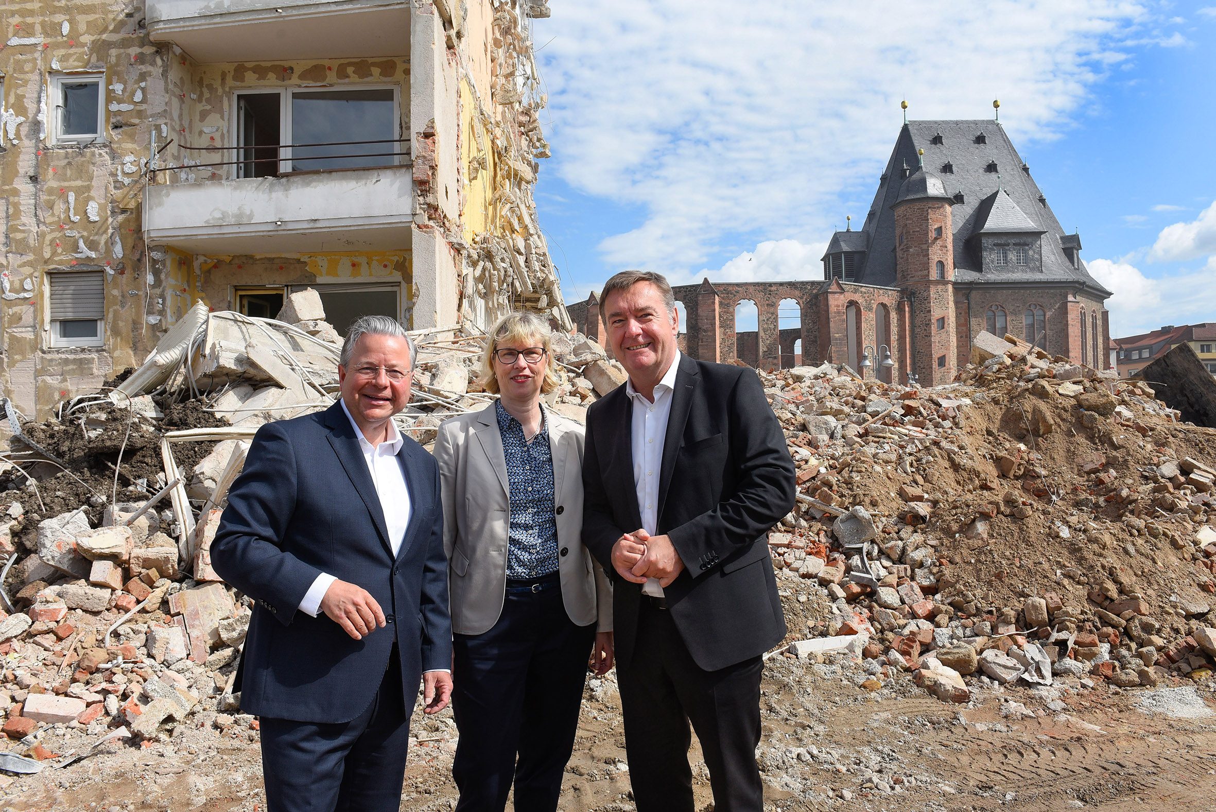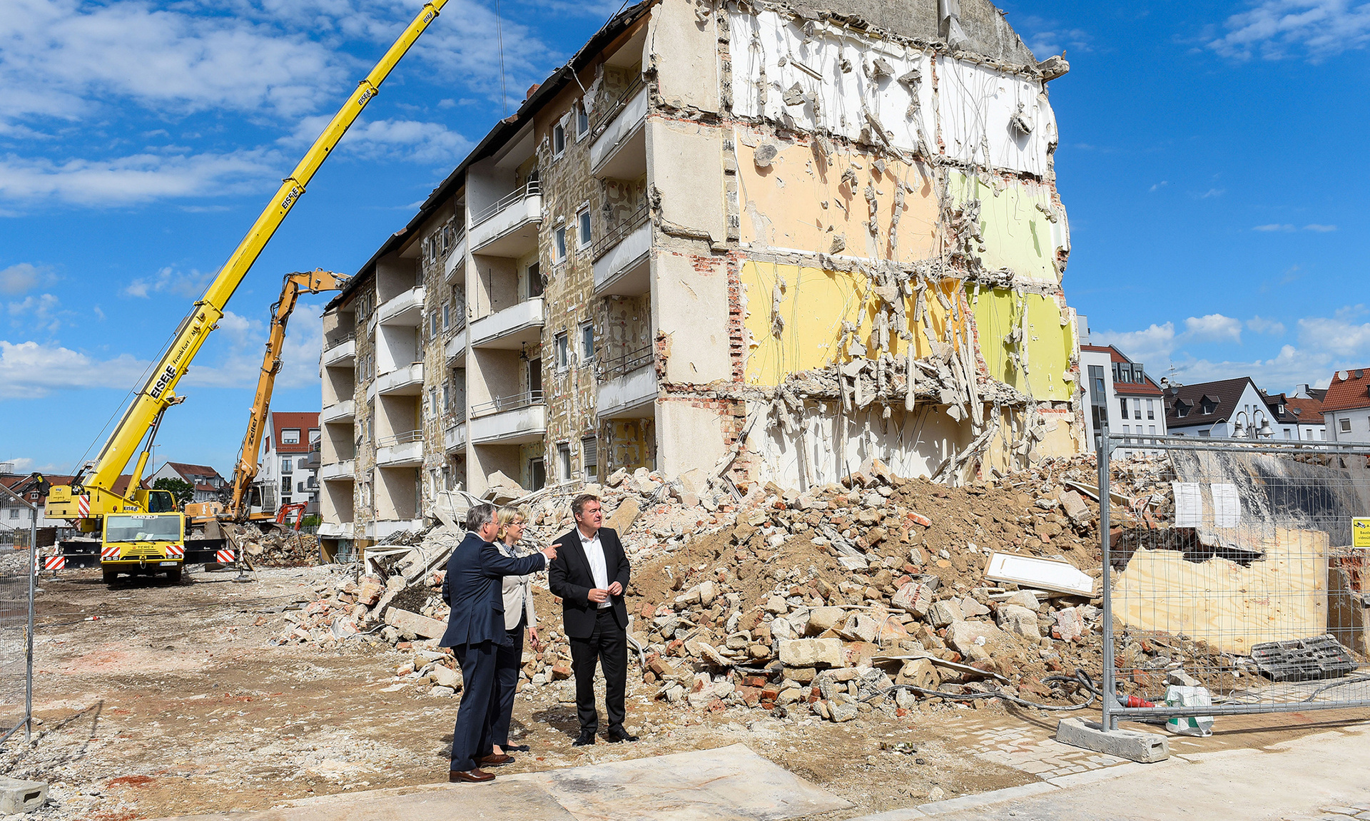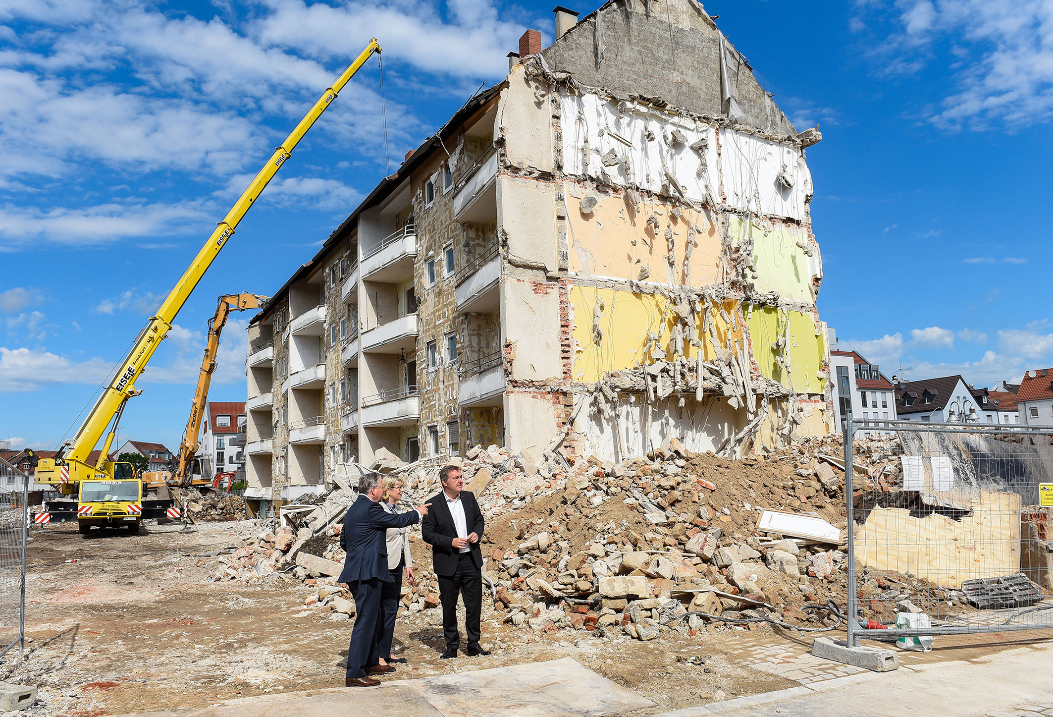Hanau – Wo derzeit eine riesige Lücke klafft, entsteht bald neuer Wohnraum. Die Unternehmensgruppe Nassauische Heimstätte | Wohnstadt baut in Hanau süd-westlich der Wallonisch-Niederländischen Kirche im Quartier zwischen Hahnenstraße, Französischer Allee, Karl-Röttelberg-Straße und Gärtnerstraße zwölf neue Gebäude mit 156 Mietwohnungen, rund 30 davon gefördert, und drei Gewerbeeinheiten. Sie ersetzen die in die Jahre gekommenen 98 Wohneinheiten aus den Baujahren 1953 und 1954, deren Bausubstanz wirtschaftlich nicht mehr verwertbar war und die daher in den vergangenen Wochen abgerissen wurden. „Bislang gab es an dieser Stelle eine Gesamtwohnfläche von rund 4.670 qm, künftig werden es fast 10.500 qm sein“, erläutert Geschäftsführer Dr. Constantin Westphal. „Die Gesamtwohnfläche wird durch dieses Neubauprojekt also mehr als verdoppelt. Und nicht nur das: Wir ersetzen alten, nicht mehr zeitgemäßen Bestand durch moderne, energieeffiziente, familienfreundliche und bezahlbare Wohnungen.“ Hanaus Oberbürgermeister Claus Kaminsky stimmte ihm zu. „Der Nachfragedruck nach Wohnraum, darunter nach gefördertem, ist auch in Hanau hoch. Die Nassauische Heimstätte trägt nicht nur dazu bei, diesen Druck zu lindern, sondern sie tut dies mit einem städtebaulich äußerst gelungenen Projekt. Das ist eine entscheidende Weichenstellung für die Entwicklung der südlichen Innenstadt.“ Die bei der Nassauischen Heimstätte für den Bereich Neubau zuständige Geschäftsführerin Monika Fontaine-Kretschmer betonte: „Das Projekt Hahnenstraße liegt von A bis Z komplett in den Händen unserer Planer. Von daher freut es mich sehr, dass sich die Öffentlichkeit bei diesem Vorhaben mit hohem städtebaulichem Anspruch ein Bild von der Expertise machen kann, die in unserem Haus vorhanden ist.“