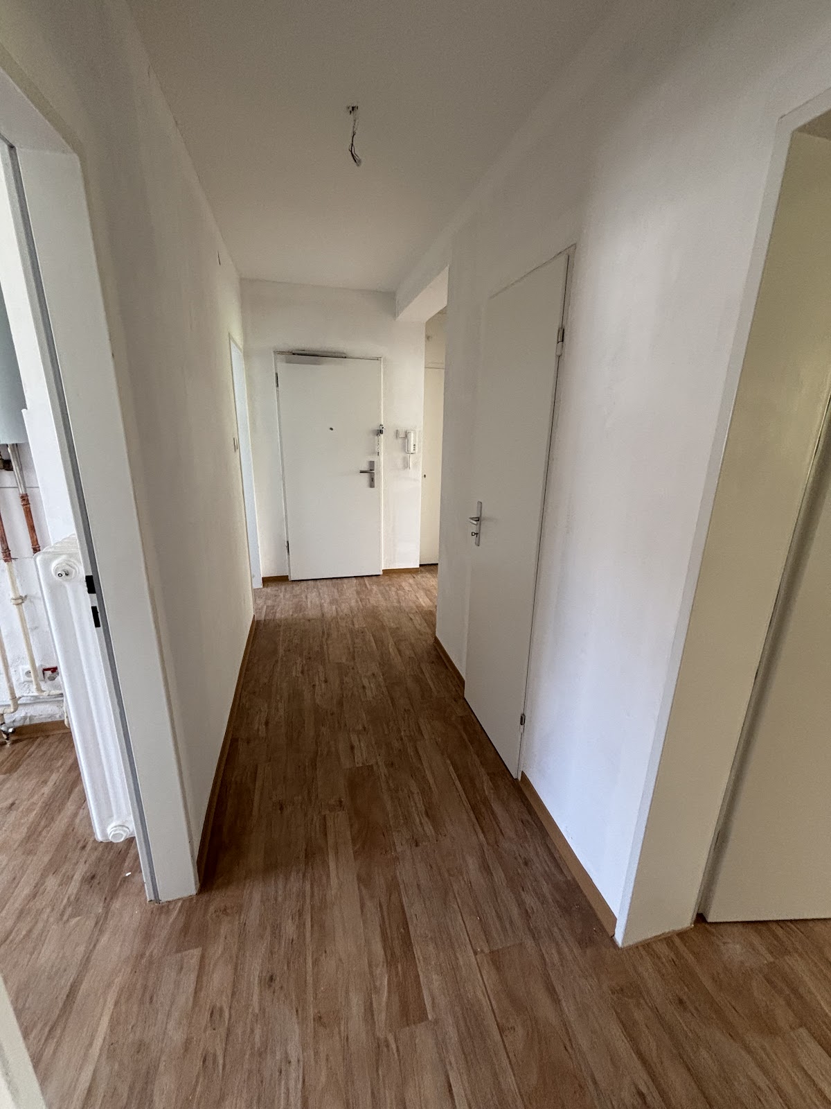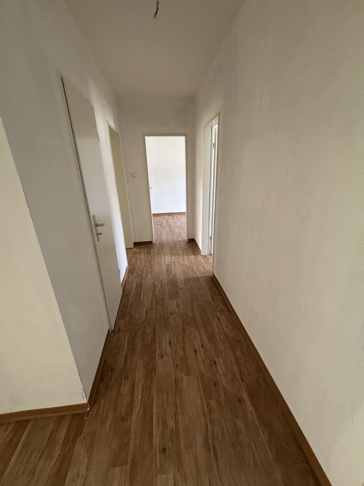 Das Wohnzimmer bildet den Mittelpunkt der Wohnung. Vom Wohnzimmer aus gelangen Sie auf den Balkon, der zusätzlichen Freiraum im Außenbereich bietet. Das Schlafzimmer ist gut proportioniert und eignet sich für erholsame Nächte. Das dritte Zimmer lässt sich flexibel als Kinderzimmer oder Arbeitszimmer nutzen und ergänzt den praktischen Grundriss. Die Küche ist neutral gehalten und bietet Raum für die tägliche Zubereitung von Mahlzeiten. Das Badezimmer ist mit einer Badewanne ausgestattet. Ein funktionaler Flur verbindet die Räume logisch miteinander. Ein Kellerraum steht zur Verfügung und sorgt für zusätzlichen Stauraum.