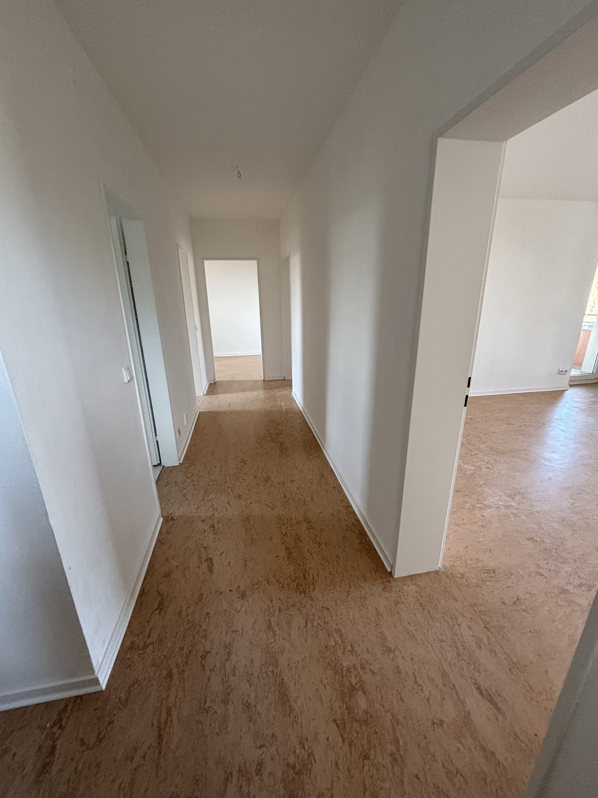 Das großzügige Wohnzimmer bildet den zentralen Mittelpunkt der Wohnung und bietet ausreichend Platz für einen angenehmen Wohnbereich. Das Schlafzimmer eignet sich gut als ruhiger Rückzugsort, während das dritte Zimmer flexibel als Kinderzimmer oder Arbeitszimmer genutzt werden kann. Die Küche ist neutral gestaltet und bietet eine praktische Grundlage für den täglichen Gebrauch. Das Badezimmer ist mit einer Badewanne ausgestattet. Ein Flur verbindet die einzelnen Räume miteinander und sorgt für eine sinnvolle Aufteilung der Wohnung.