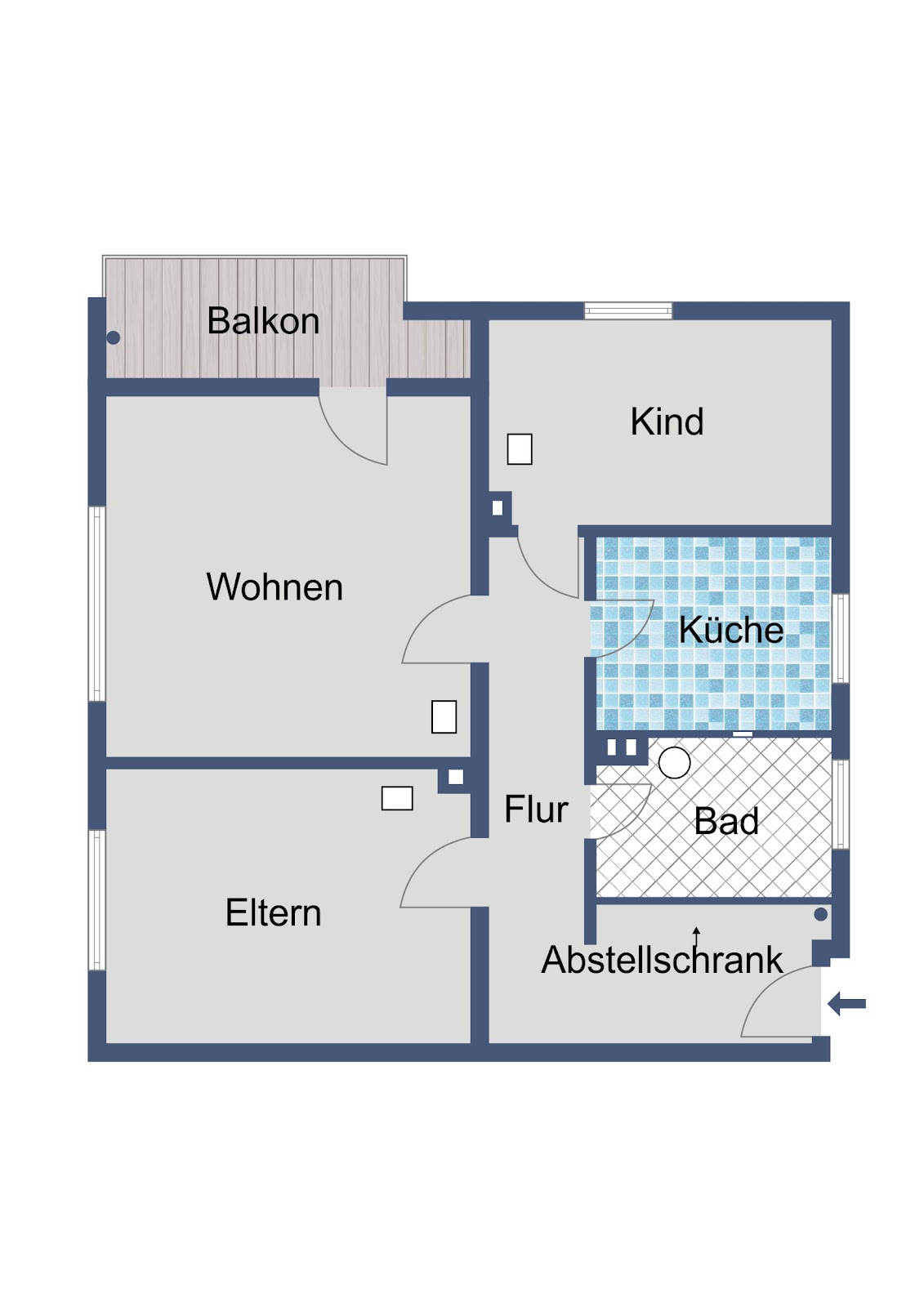 Beim Betreten der Wohnung gelangen Sie in einen funktional geschnittenen Flur, von dem aus alle weiteren Räume bequem erreichbar sind. Das Wohnzimmer bildet den Mittelpunkt der Wohnung und bietet ausreichend Platz für eine gemütliche Sofaecke sowie einen Essbereich. Von hier aus gelangen Sie auf den Balkon, der zusätzlichen Freiraum im Außenbereich schafft und insbesondere in den wärmeren Monaten zum Verweilen einlädt. Das Schlafzimmer ist als ruhiger Rückzugsort angelegt und bietet passende Stellflächen für ein Doppelbett und einen Kleiderschrank. Ein weiteres Zimmer kann flexibel als Kinderzimmer, Arbeitszimmer oder Gästezimmer genutzt werden und erhöht damit die Alltagstauglichkeit der Wohnung. Die Küche ist separat angeordnet und für den täglichen Gebrauch gut nutzbar, unabhängig davon, ob eine kompakte oder umfangreichere Küchenausstattung vorgesehen ist. Das Badezimmer ist mit einer Badewanne ausgestattet und bietet eine komfortable Grundausstattung für den Alltag. Ein zur Wohnung gehörender Kellerraum sorgt für zusätzlichen Stauraum, etwa für saisonale Gegenstände oder selten genutzte Utensilien, und unterstützt eine aufgeräumte Wohnsituation.