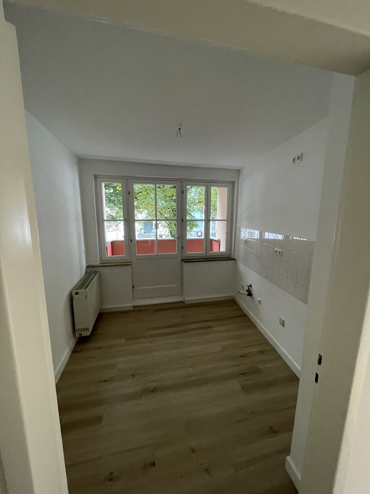 In Küche und Flur ist ein neuer Vinyl-Bodenbelag vorhanden. Die Wohn-/ Schlafräume sind für eine mietereigene Bodenbelegung vorbereitet.