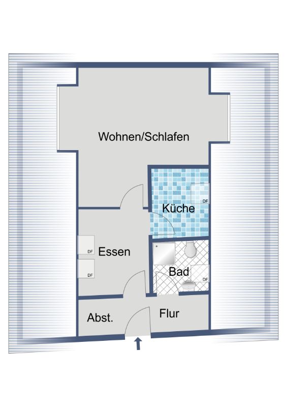 Die Wohnung hat einen guten Schnitt, so sind alle Zimmer vom Flur aus begehbar. Das Wohn- und Schlafzimmer sind großzügig geschnitten und bieten Ihnen ausreichend Platz. Das innenliegende Badezimmer ist mit einer Wanne ausgestattet.