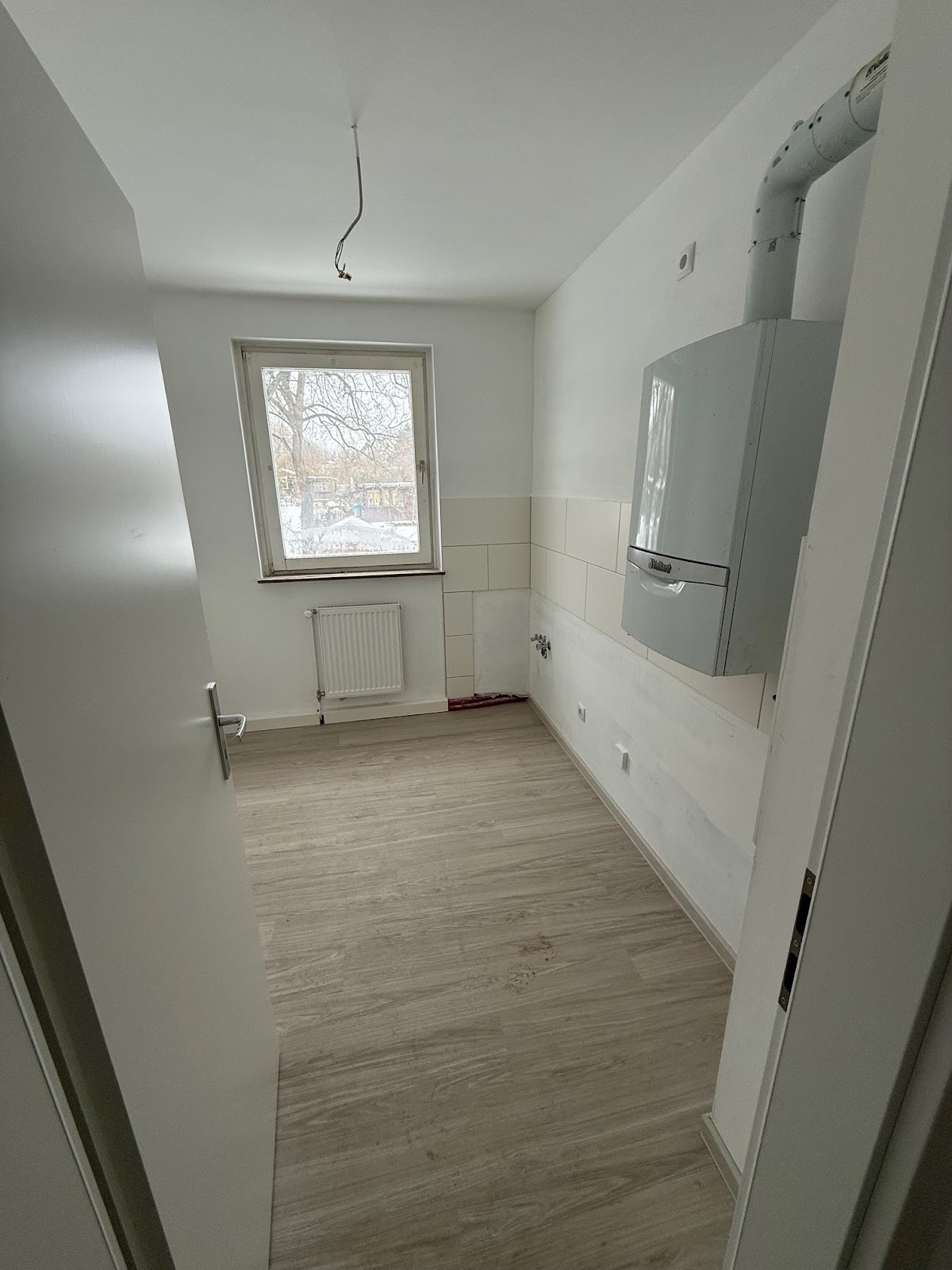 Im Wohn- und Schlafbereich ist das Verlegen eines Bodenbelags noch durch den neuen Mieter bei Einzug vorzunehmen.