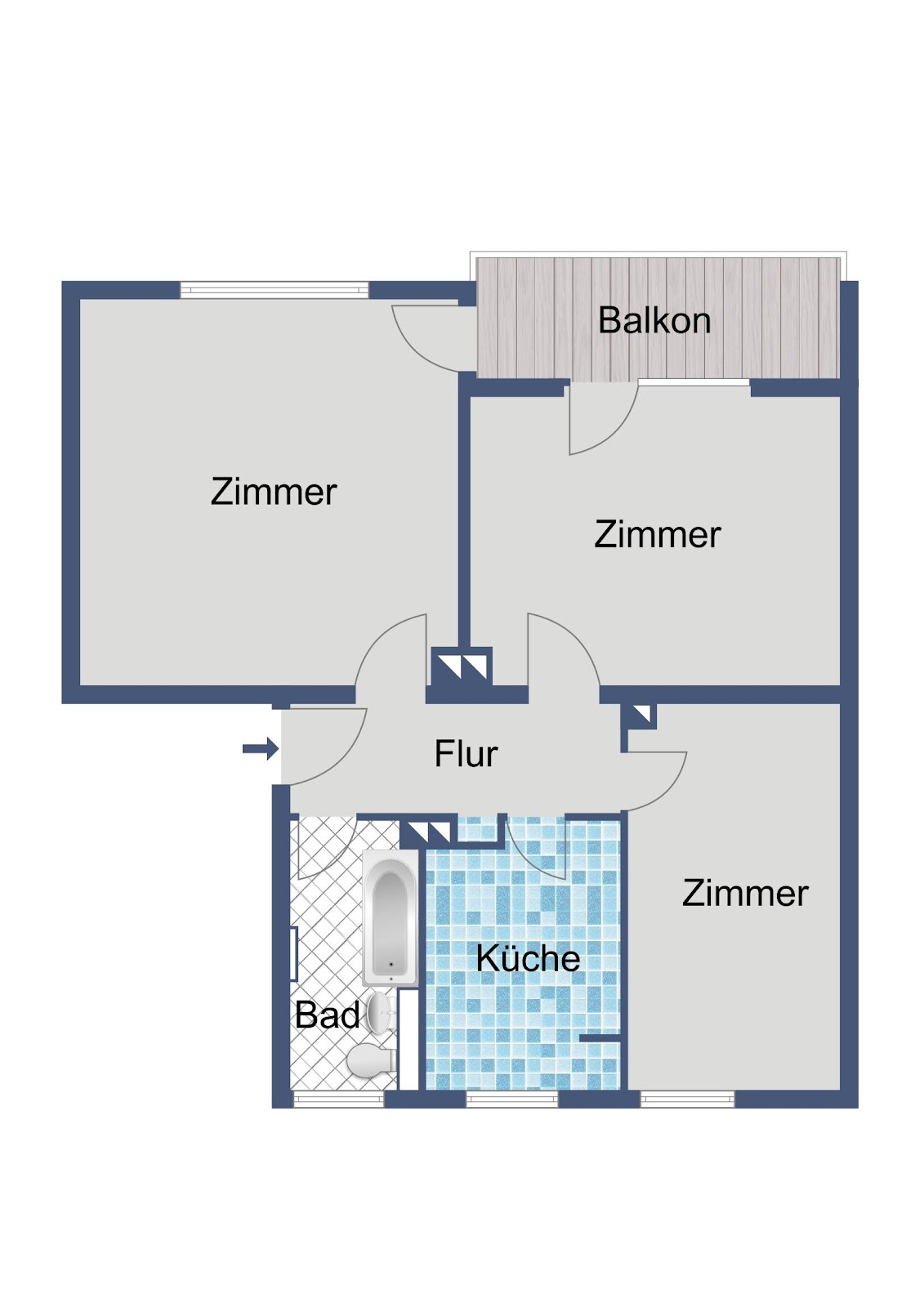 Praktisch geschnittene 3-Zimmer-Wohnung für Paare oder kleine Familien