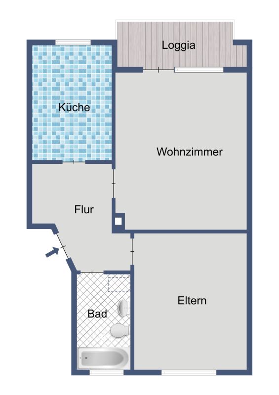 Das separate Schlafzimmer bietet einen komfortablen Rückzugsort für erholsame Nächte. Das Tageslichtbad ist mit einer Badewanne ausgestattet und sorgt für angenehmen Wohnkomfort.