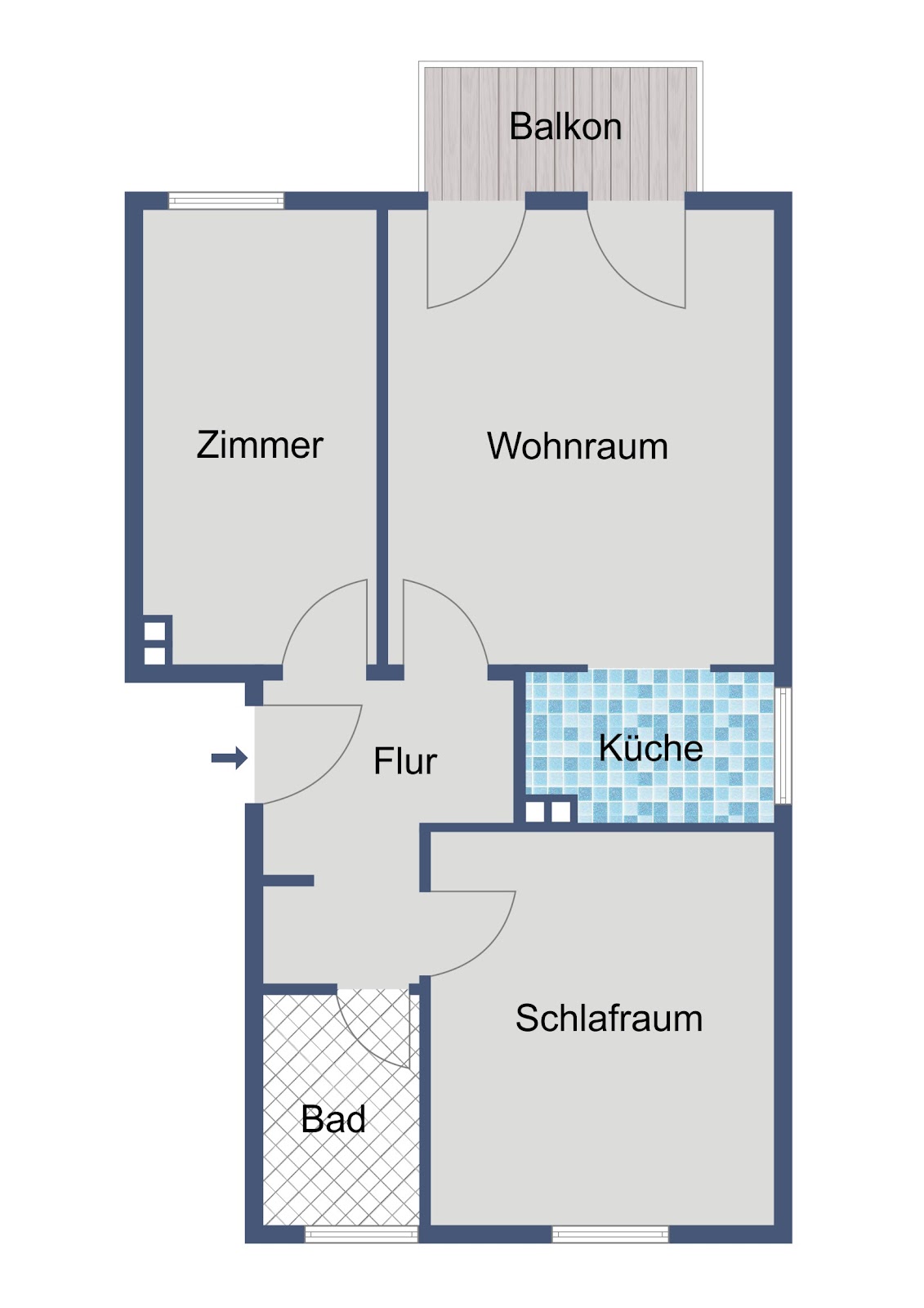 Beim Betreten der Wohnung erwarten Sie helle und gut geschnittene Räume, die vom zentral gelegenen Flur zu erreichen sind. Mit wenigen Handgriffen und ein paar Dekorationsideen können Sie sich hier schnell ein gemütliches Zuhause einrichten.