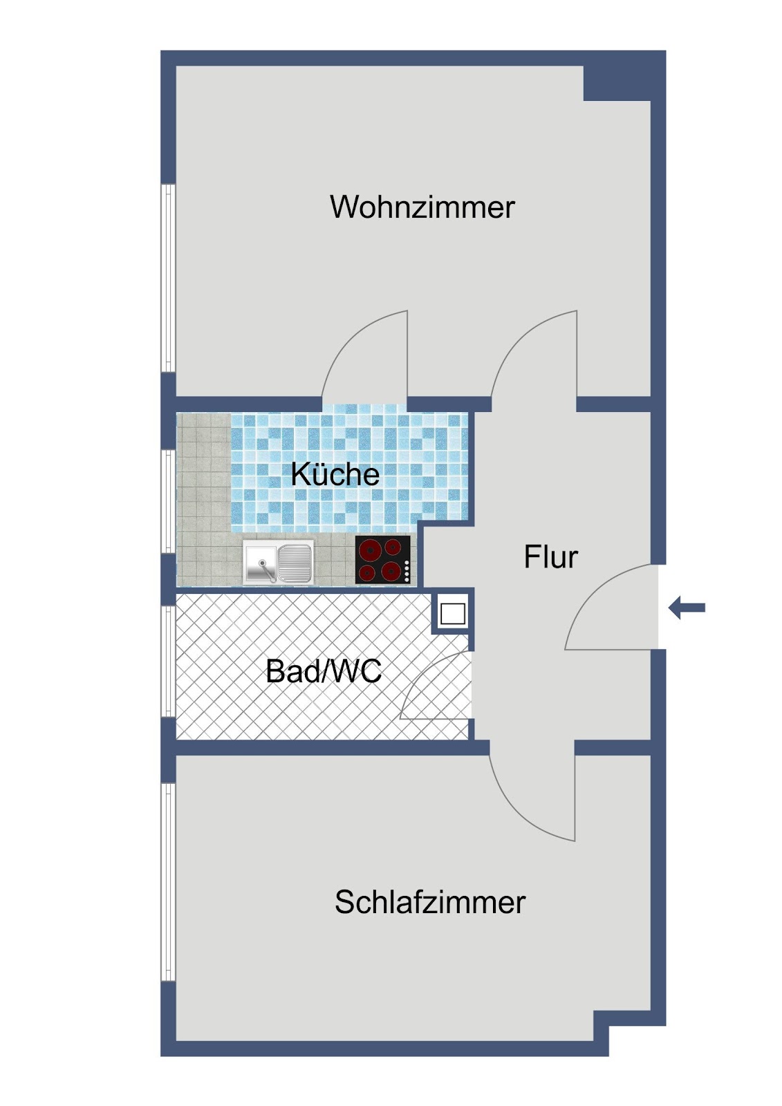 Über einen kleinen Flur können Sie alle Räume erreichen. Wohn- und Schlafzimmer verfügen über einen guten Schnitt, sodass alle nötigen Möbel einen geeigneten Platz bekommen. Das Tageslichtbad ist mit einer Badewanne ausgestattet.