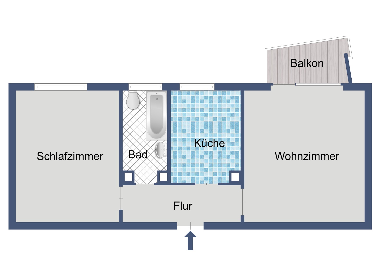 Das helle Wohnzimmer bildet den Mittelpunkt der Wohnung und bietet ausreichend Platz für individuelle Gestaltungsmöglichkeiten. Vom Wohnzimmer aus gelangen Sie auf den Balkon, der zusätzlichen Freiraum im Außenbereich bietet. Das Schlafzimmer ist ruhig gelegen und eignet sich ideal als Rückzugsort. Die Küche ist funktional geschnitten und ermöglicht eine praktische Nutzung im Alltag. Das Badezimmer ist mit einer Badewanne ausgestattet. Ein Kellerraum steht Ihnen ebenfalls zur Verfügung und bietet zusätzlichen Stauraum.