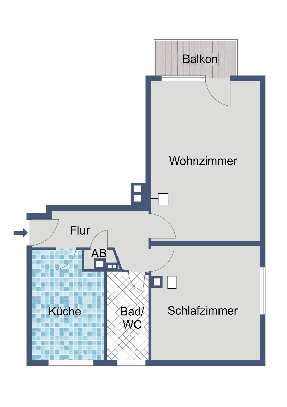 Der praktisch geschnittene Flur verbindet die einzelnen Räume der Wohnung miteinander. Das Wohnzimmer bietet ausreichend Platz für einen komfortablen Wohnbereich und verfügt über den Zugang zu einem Balkon, der den Wohnraum nach außen erweitert und eine angenehme Möglichkeit zum Aufenthalt im Freien schafft. Das Schlafzimmer eignet sich gut als ruhiger Rückzugsort. Die Küche wurde im Zuge der Modernisierung erneuert, ist neutral und funktional gestaltet und bietet Raum für die tägliche Zubereitung von Mahlzeiten. Das Badezimmer wurde ebenfalls modernisiert und ist mit einer Badewanne ausgestattet. In allen Räumen ist ein Bodenbelag aus PVC in Holzoptik verlegt, und auch die Elektrik der Wohnung wurde im Rahmen der Modernisierung im Jahr 2021 erneuert. Ein Kellerraum steht als zusätzlicher Stauraum zur Verfügung und bietet Platz für Gegenstände, die nicht täglich benötigt werden.