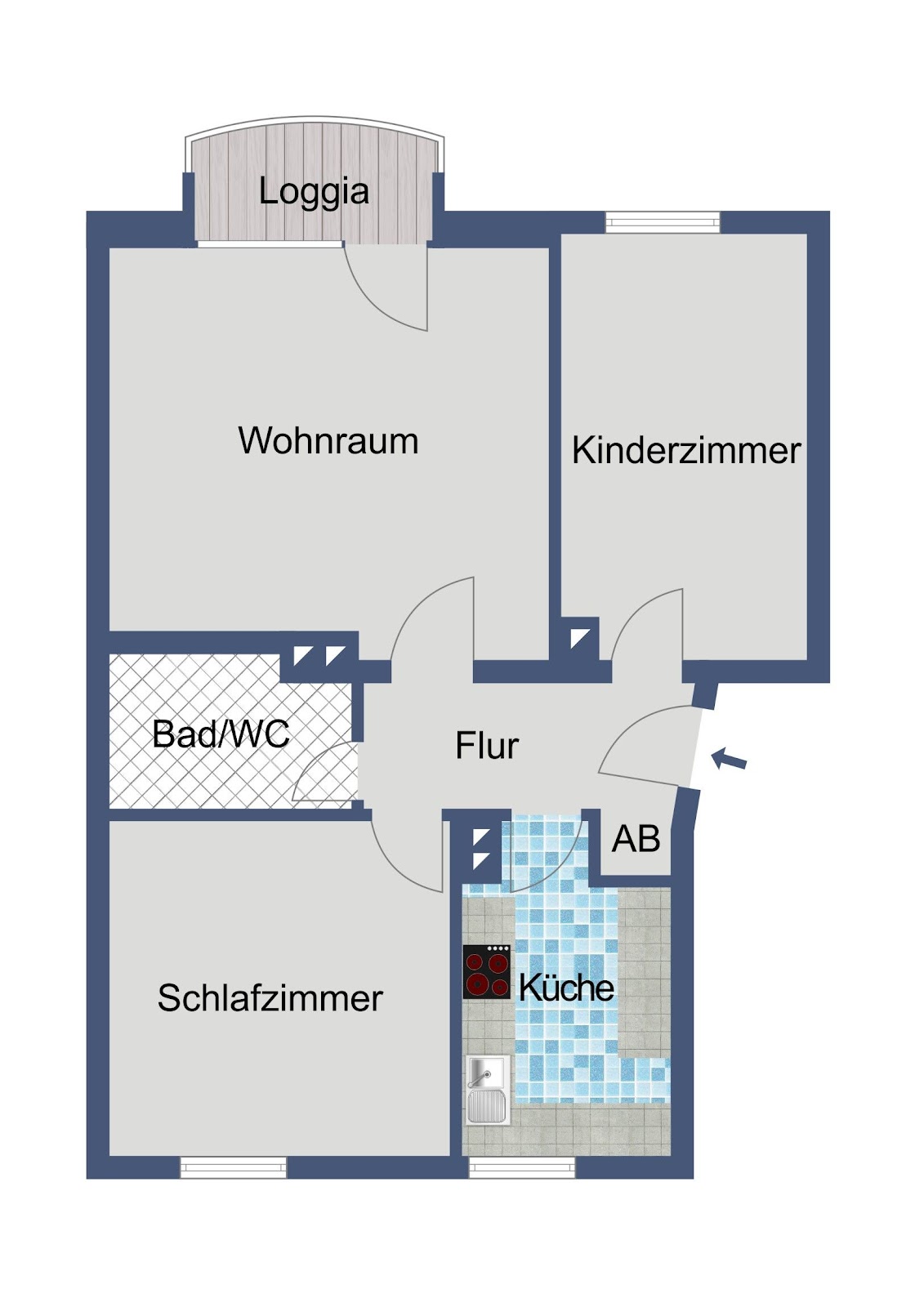 Helle 3-Zimmer-Wohnung im 4. OG mit Balkon & Badewanne