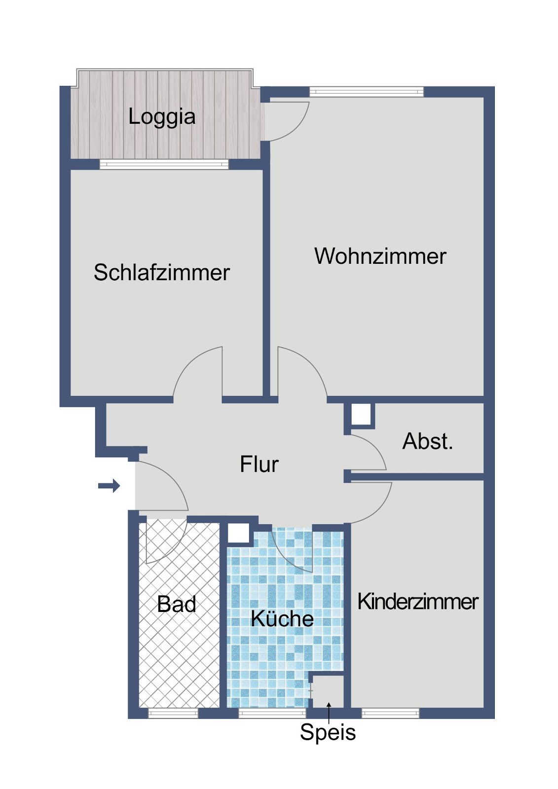 Durch den funktionalen Schnitt bietet die Wohnung genug Raum. Hier lässt sich ein gemütliches und individuelles Zuhause gestalten. Sie verfügt über zwei Schlafräume, Badezimmer mit Wanne, Küche und einen Wohnbereich mit Zugang zum Balkon. Der Waschmaschinenanschluss befindet sich direkt in der Wohnung.