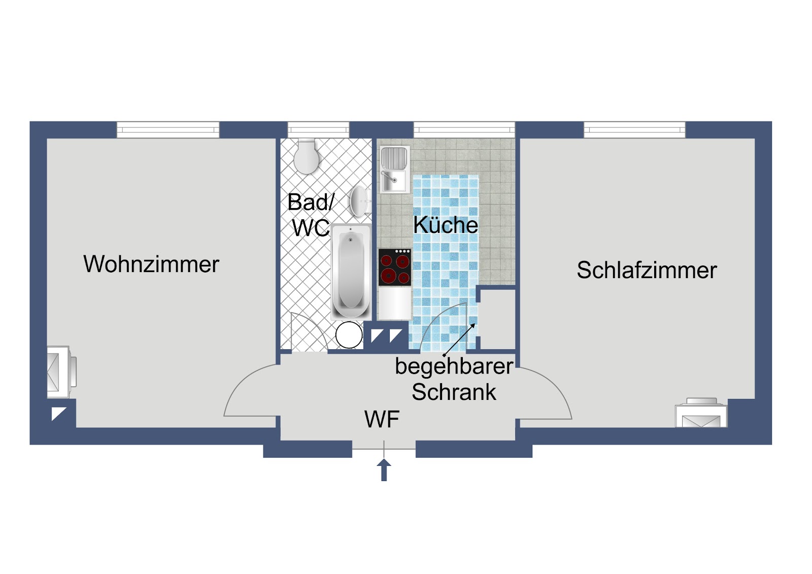 Praktische 2-Zimmer-Wohnung im 2. Obergeschoss für Singles oder Paare
