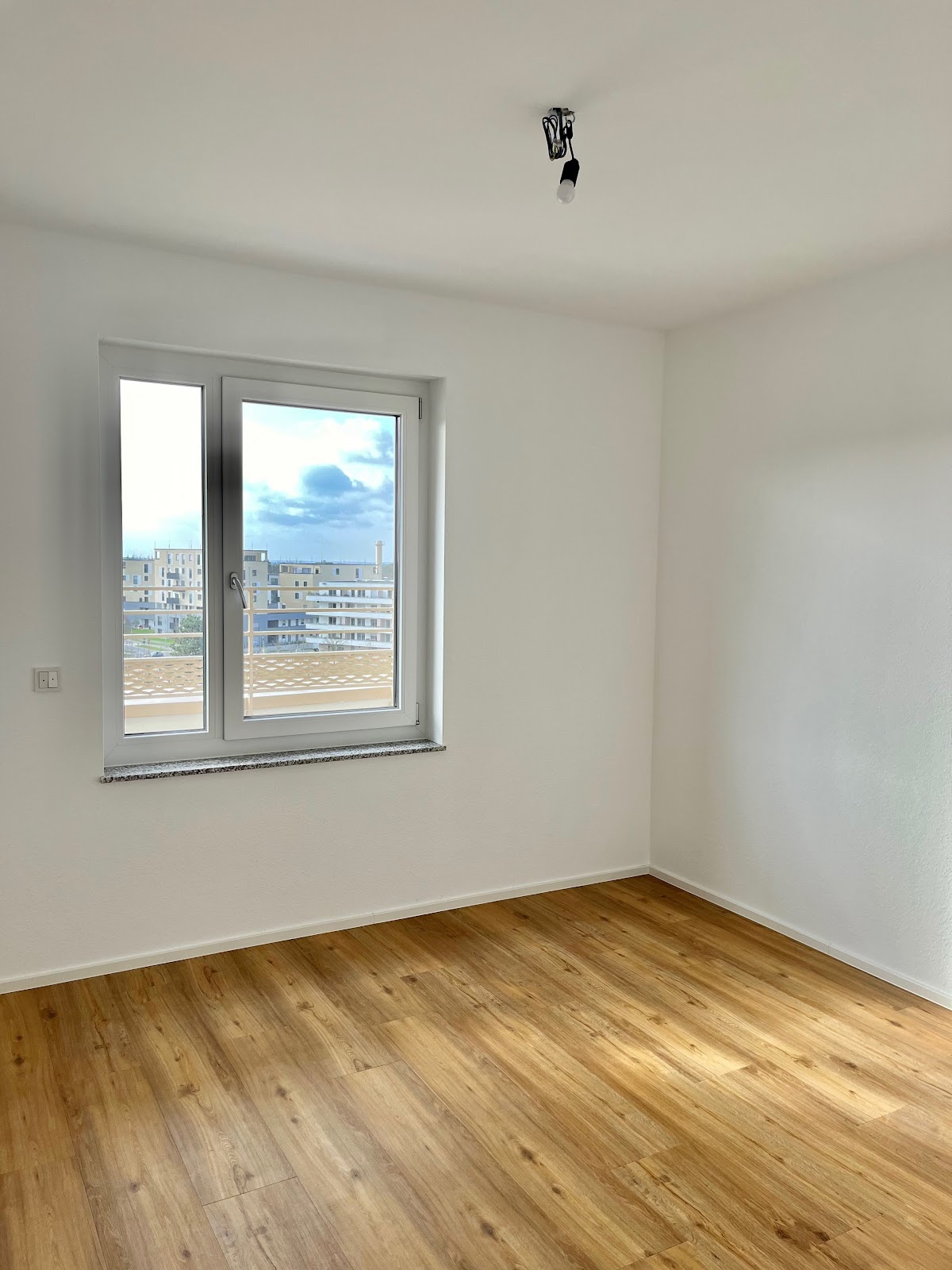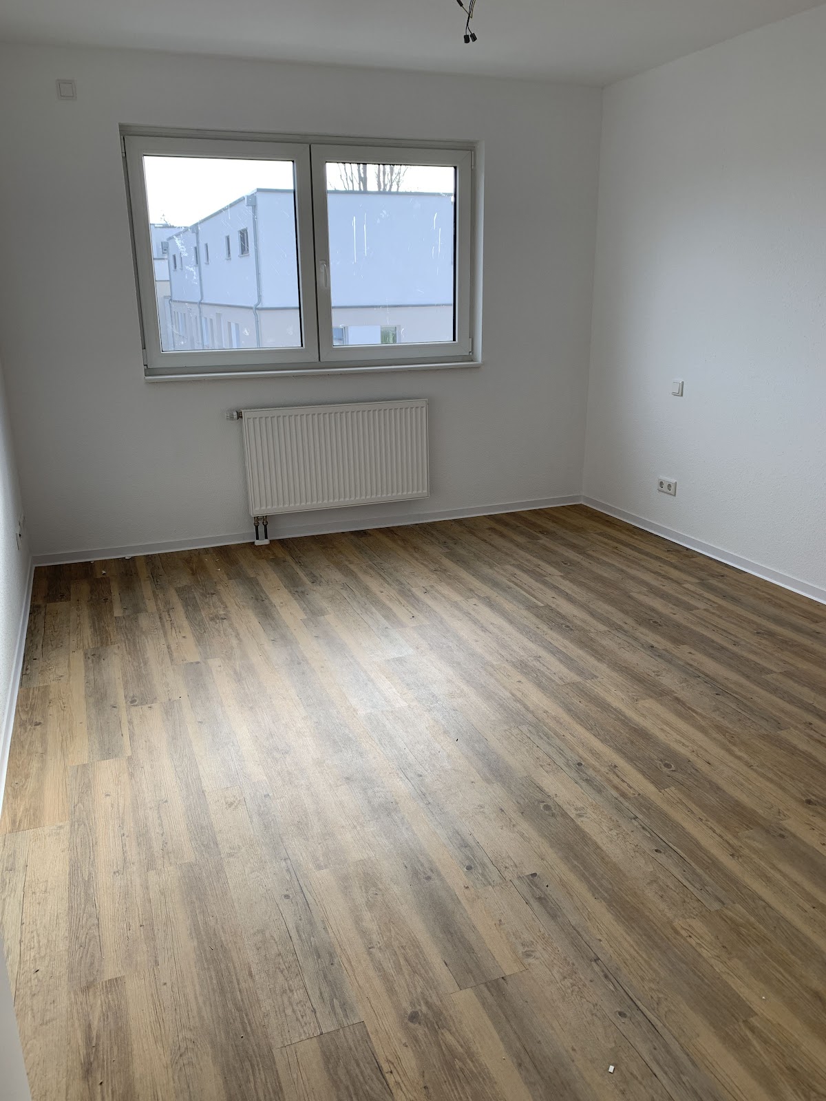 Es wurde ein Vinylbodenbelag in Holzoptik verlegt; zudem ist die Wohnung mit Raufasertapete versehen und in Weiß gestrichen.