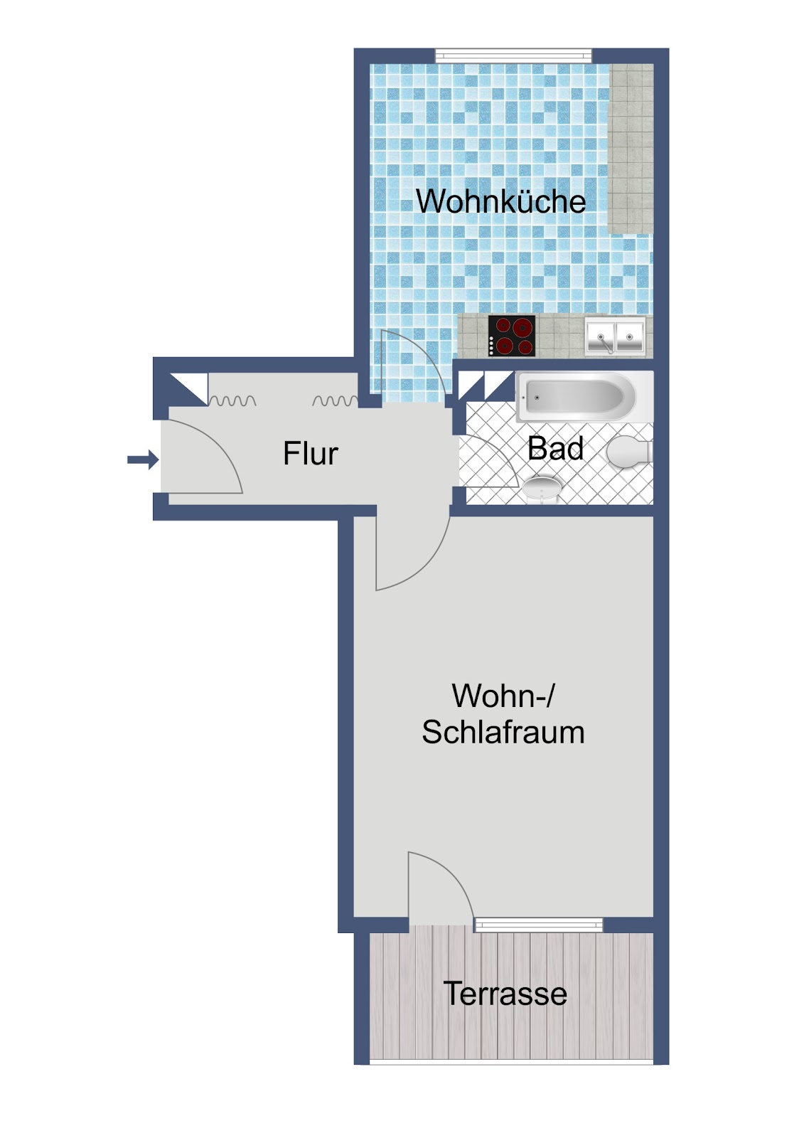 Sie wohnen im Erdgeschoss auf ca. 40 m² Wohnfläche -komfortabel, praktisch und gemütlich – hier wurde an viele Details gedacht, die den Alltag erleichtern.