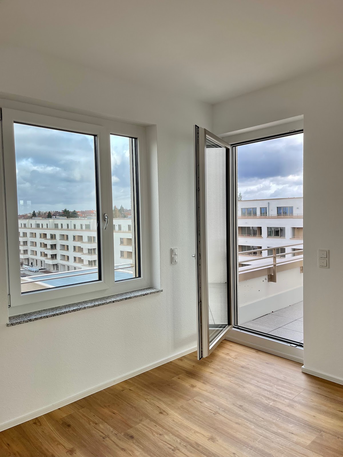 Der helle Wohnbereich bildet den Mittelpunkt der Wohnung und bietet ausreichend Platz für eine gemütliche Sofalandschaft sowie einen Essbereich. Von hier aus gelangen Sie direkt auf den Balkon, der zusätzlichen Freiraum im Außenbereich schafft und sich ideal zum Entspannen oder für das Frühstück im Freien anbietet.