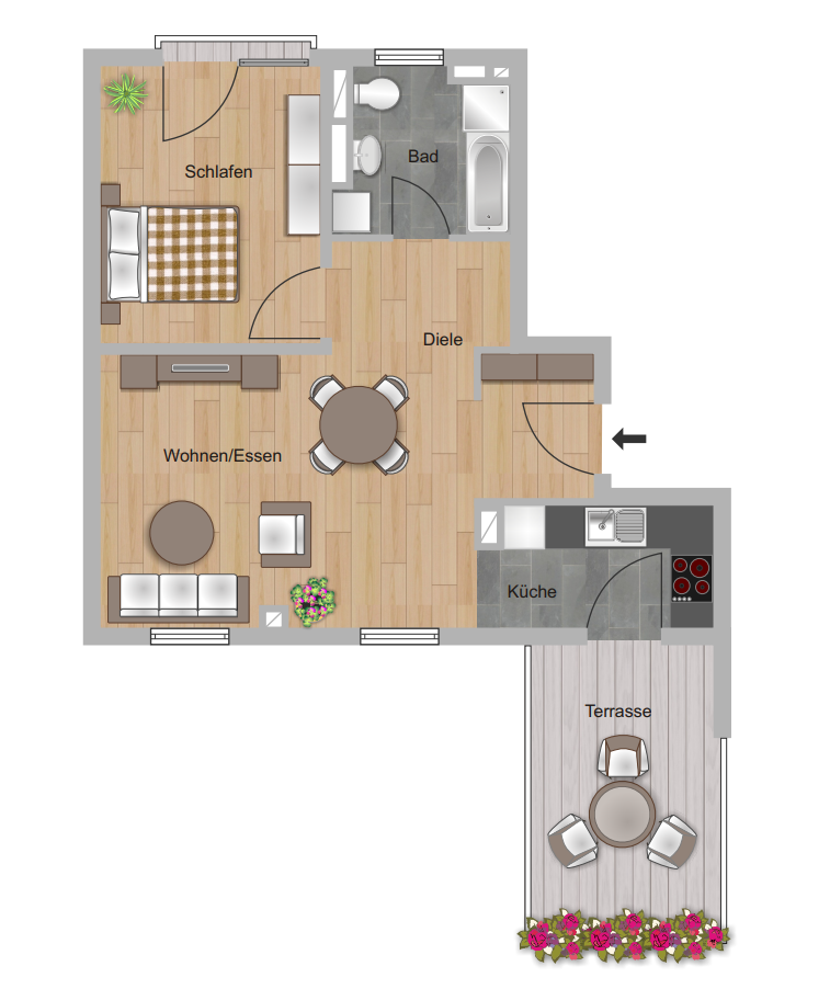 - Standortabhängig: Für unsere Mieter keinen Winter-, Mülltonnen- oder Putzdienst.