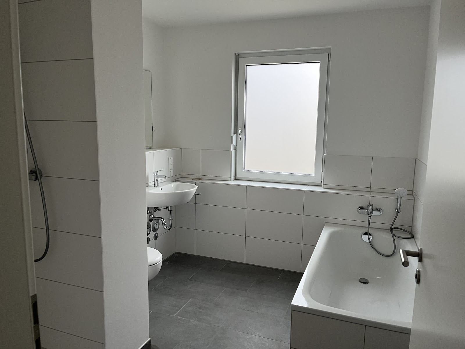Drinnen erwartet Sie ein Wohnkonzept, das Stil und Funktionalität vereint. Hochwertiger Vinylboden in Holzoptik verleiht den Räumen eine warme Ausstrahlung, während die Fußbodenheizung für wohlige Wärme sorgt – besonders angenehm an kühleren Tagen. Die Badezimmer sind modern gestaltet: Anthrazitfarbene Bodenfliesen, weiße Wandfliesen und ein Handtuchheizkörper sorgen für zeitlose Eleganz. Je nach Grundriss erwartet Sie eine Badewanne für entspannte Auszeiten oder eine ebenerdige Dusche für einen komfortablen Start in den Tag. Viele Wohnungen verfügen zudem über ein zusätzliches Gäste-WC, was den Alltag besonders angenehm macht.