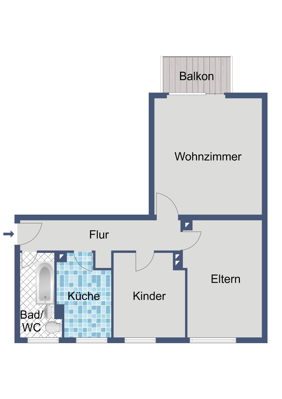 Praktisch geschnittene 3-Zimmer-Wohnung für Paare und kleine Familien