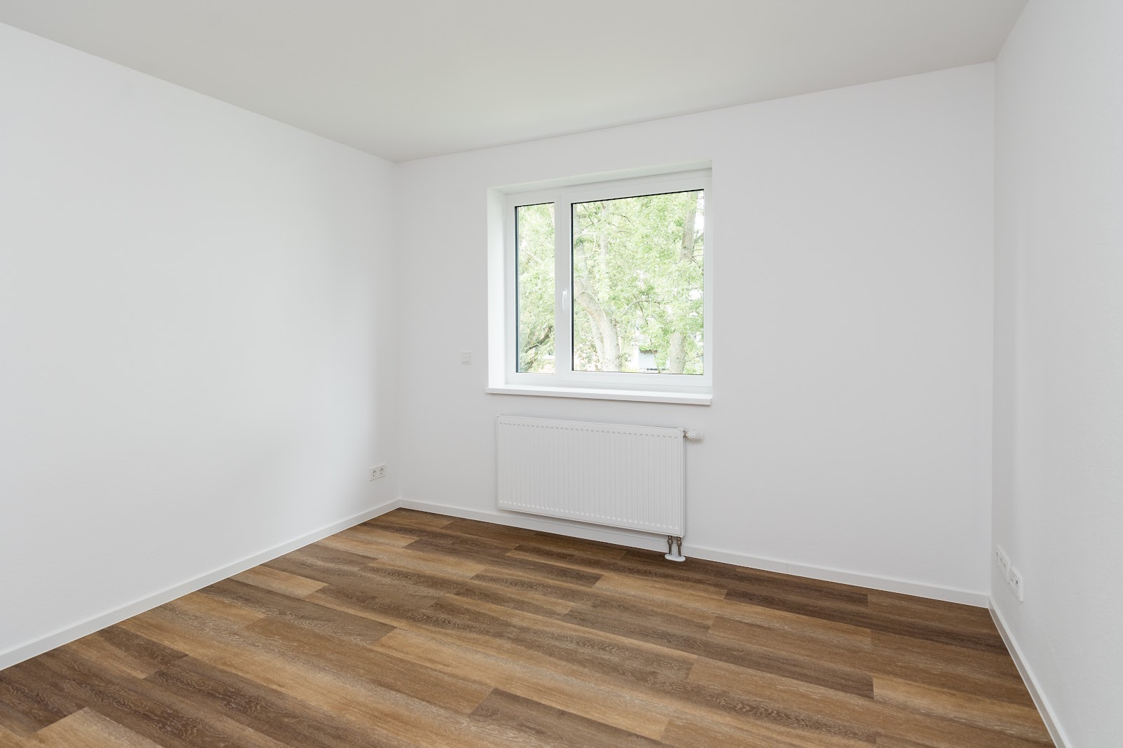 Ausgestattet ist die Wohnung mit Vinylbodenbelag in Holzdielenoptik und Raufasertapete.