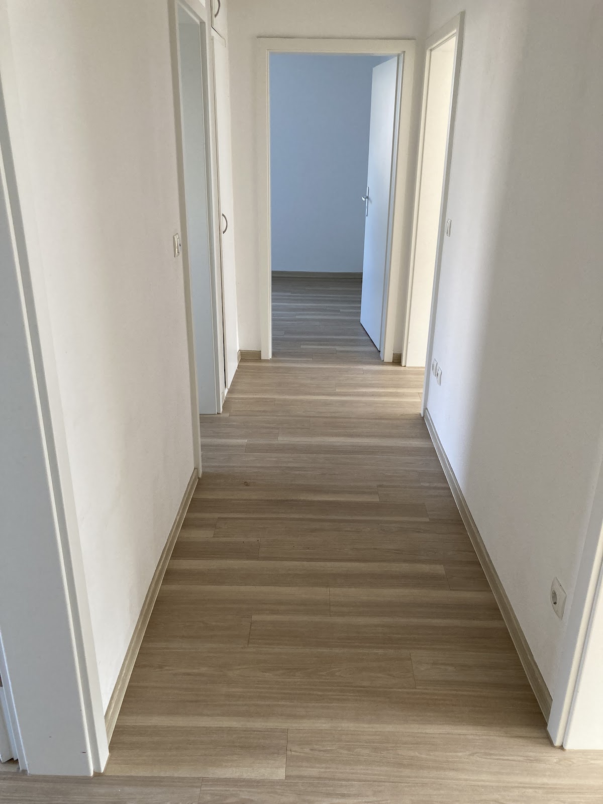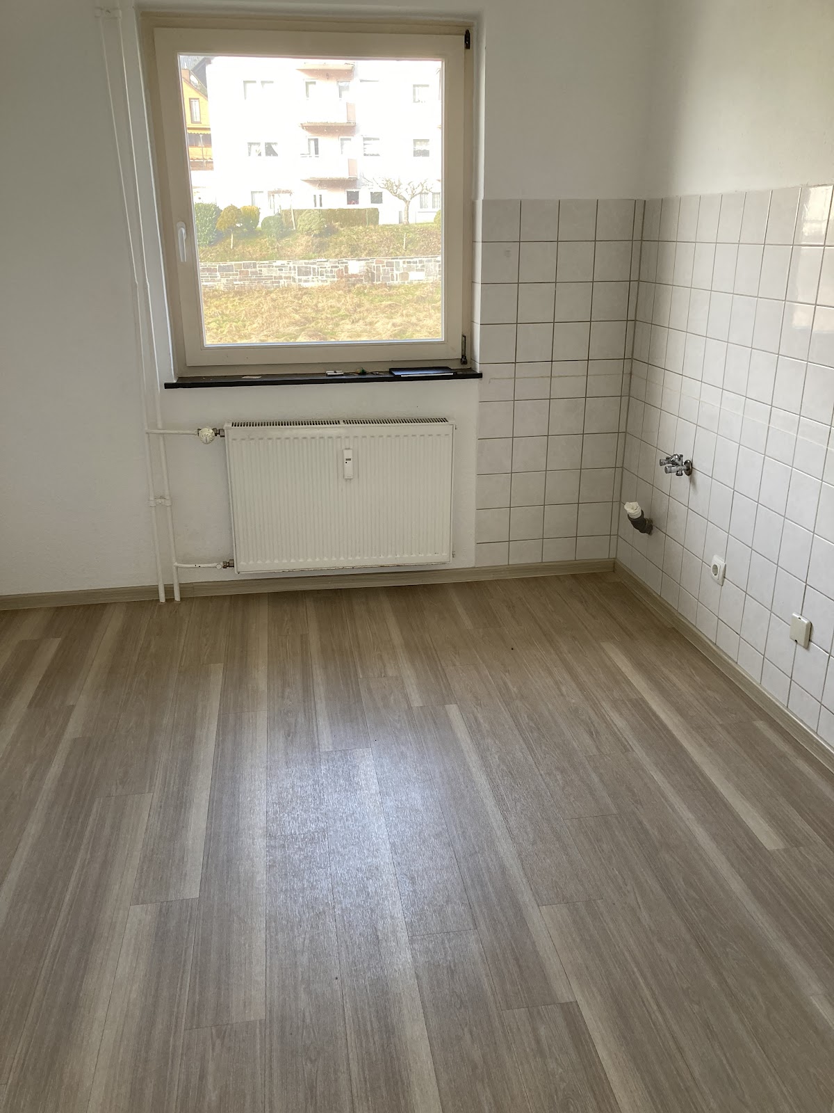 Die Wohnung ist mit weißer Raufasertapete ausgestattet. Das Verlegen eines Bodenbelags in Flur, Wohn- und Schlafbereich sind bei Einzug vom neuen Mieter durchzuführen.