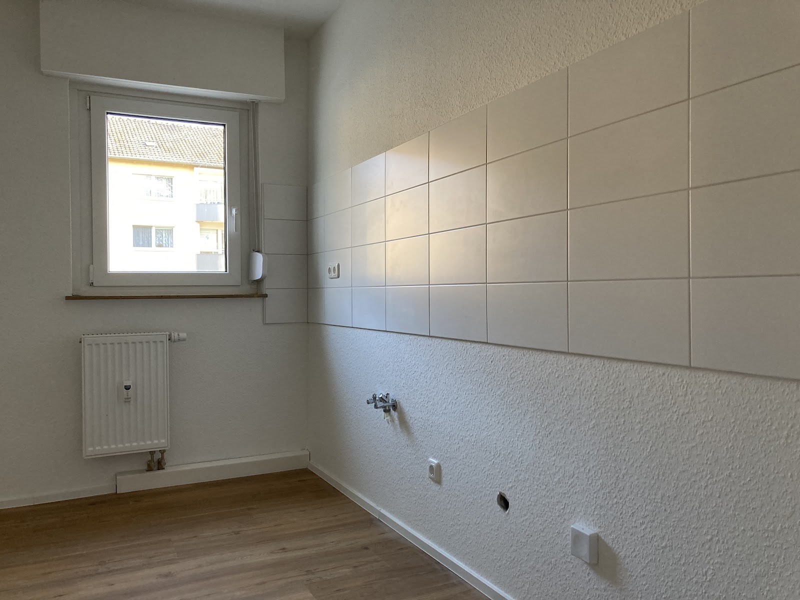 Die Küche ist funktional gestaltet und erhält durch den modernen Fliesenspiegel sowie die in der Küche und im Flur verlegten Vinylböden in Holzoptik eine gepflegte Anmutung; die Wände in diesen Bereichen sind mit Raufasertapete versehen. In den übrigen Wohnräumen werden die Böden für die Verlegung eines eigenen Bodenbelags vorbereitet.