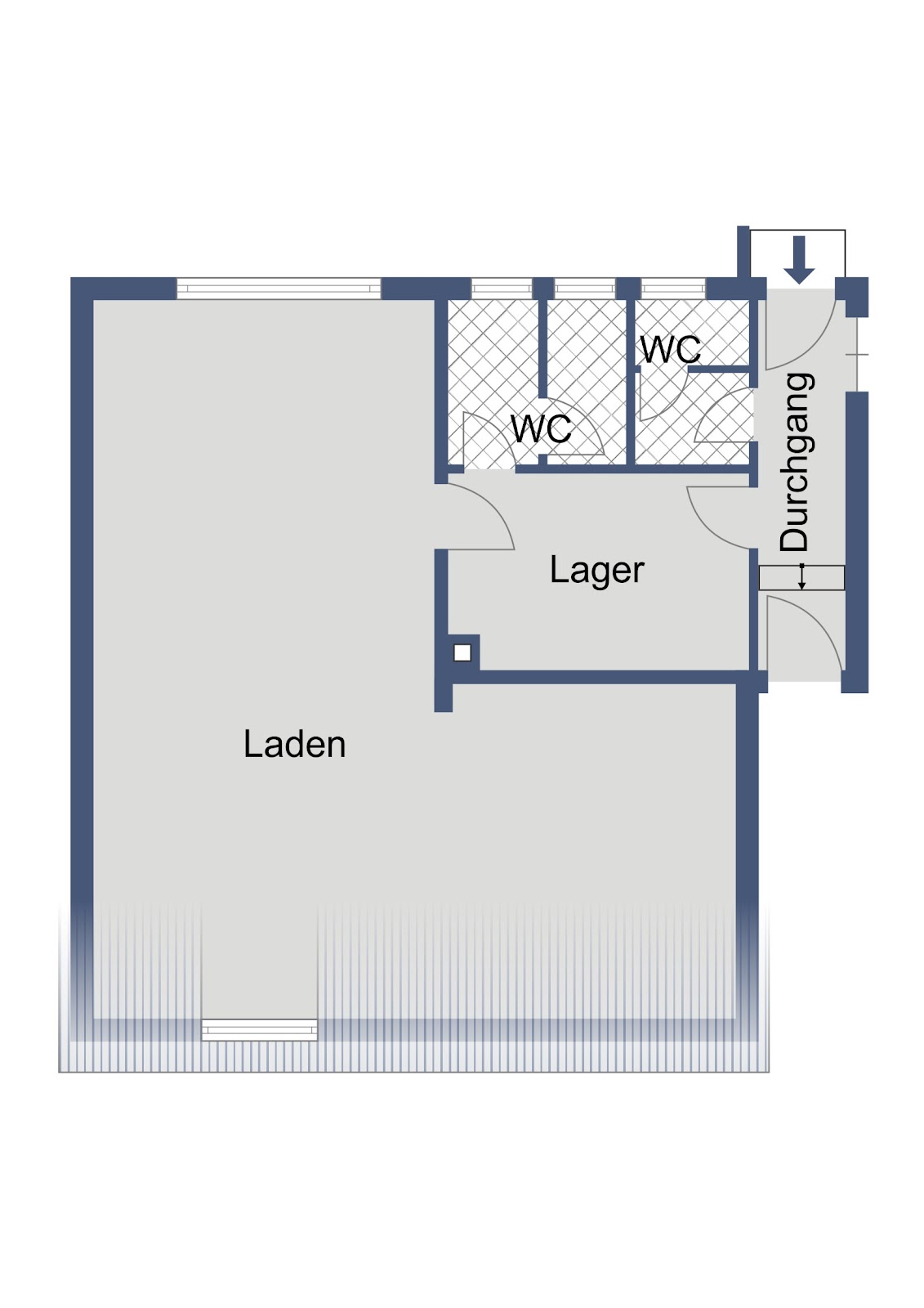Als Nebenraum wird ein Lagerraum im Keller mit vermietet. Die Fläche eignet sich für alle Arten des Einzelhandels.