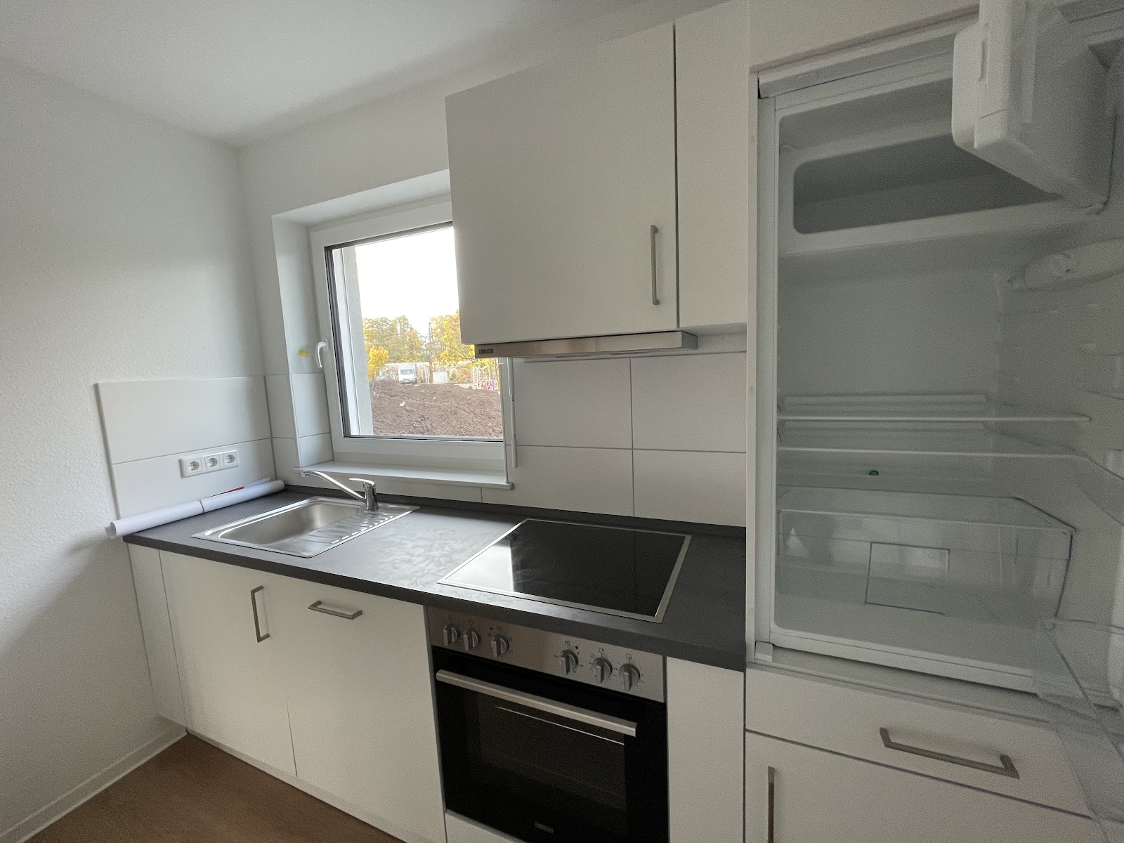 Die offene Küche wird mit einer Einbauküche übergeben und bietet Raum für die Einrichtung nach Ihren individuellen Vorstellungen.