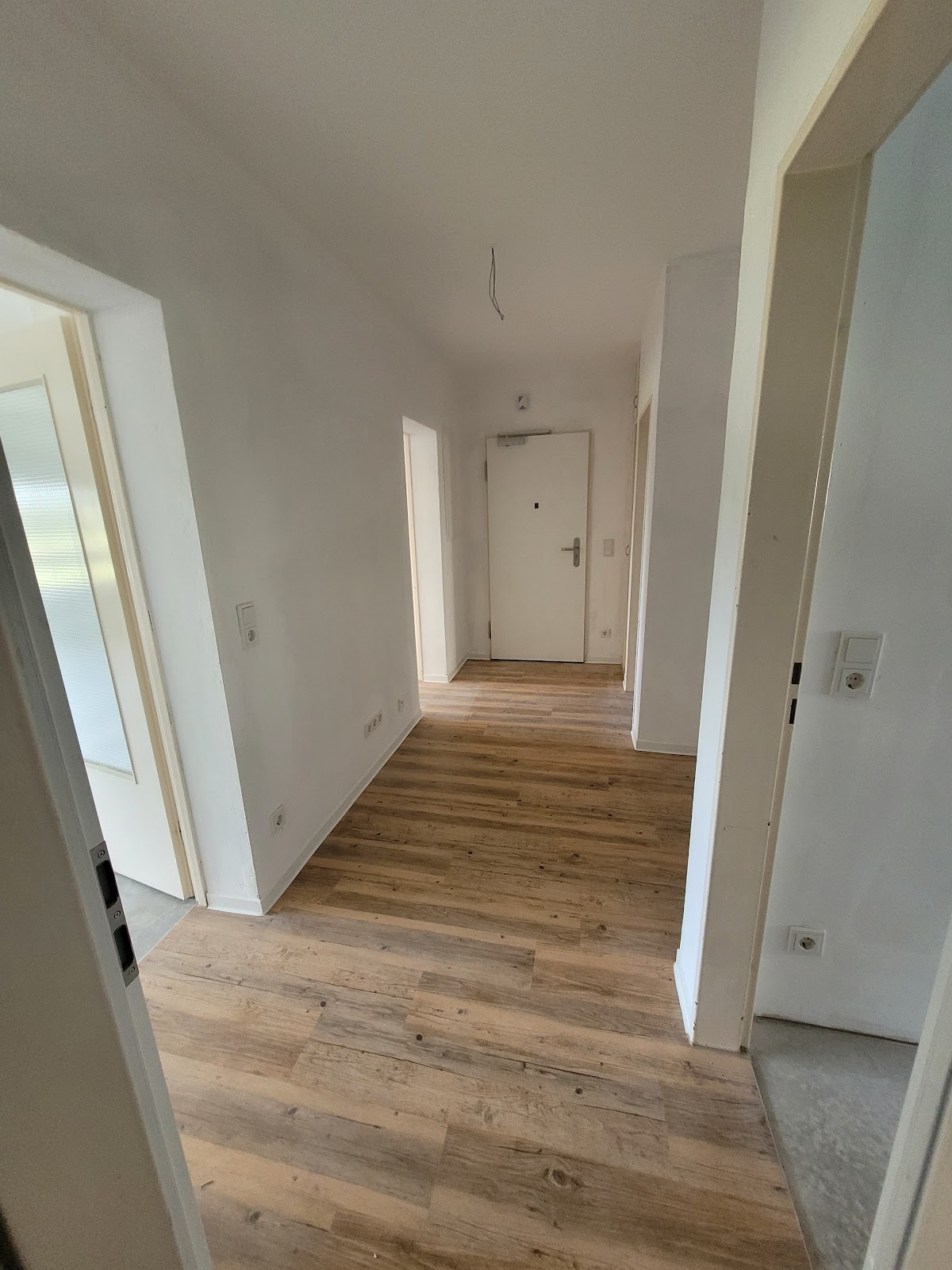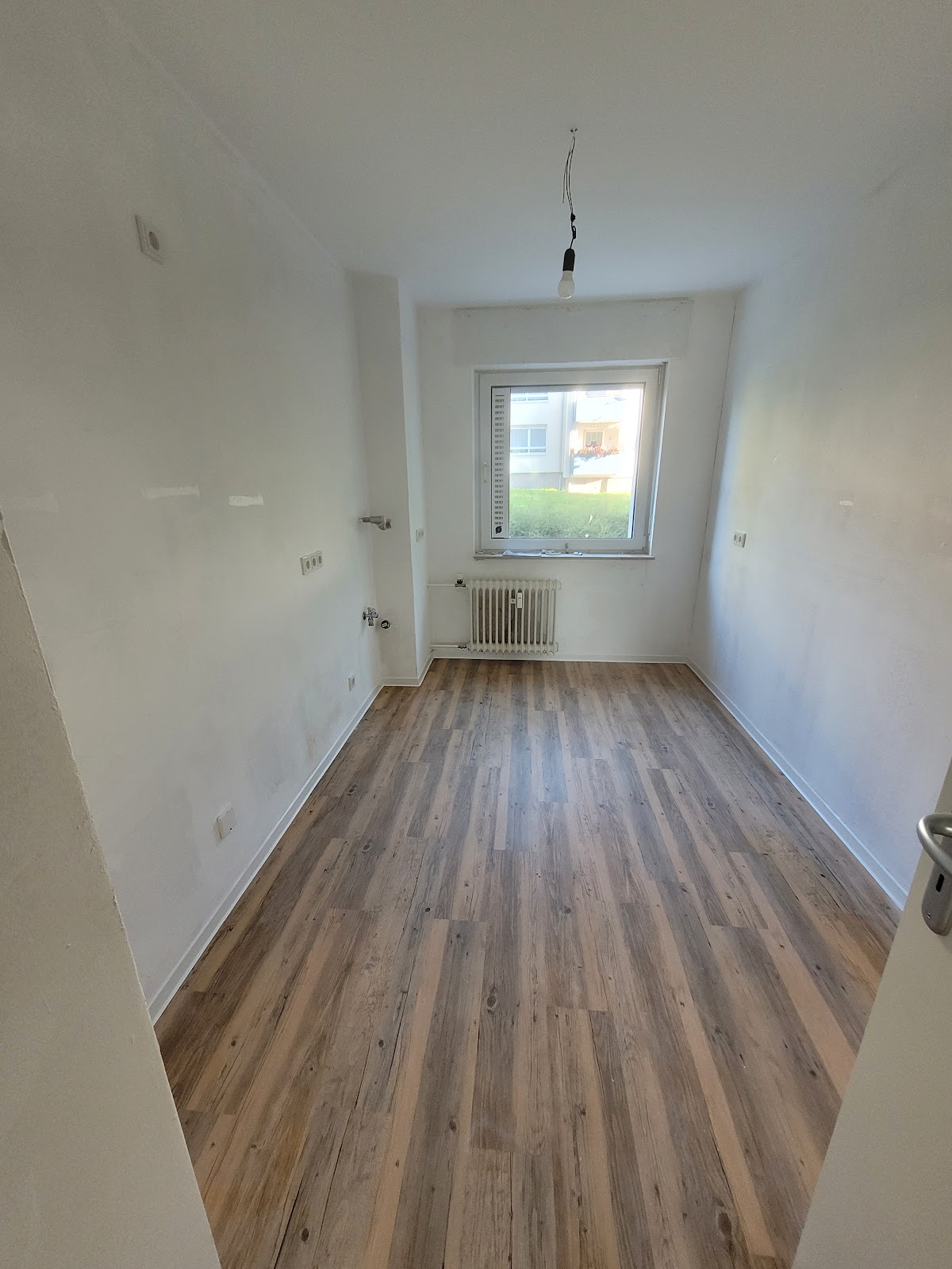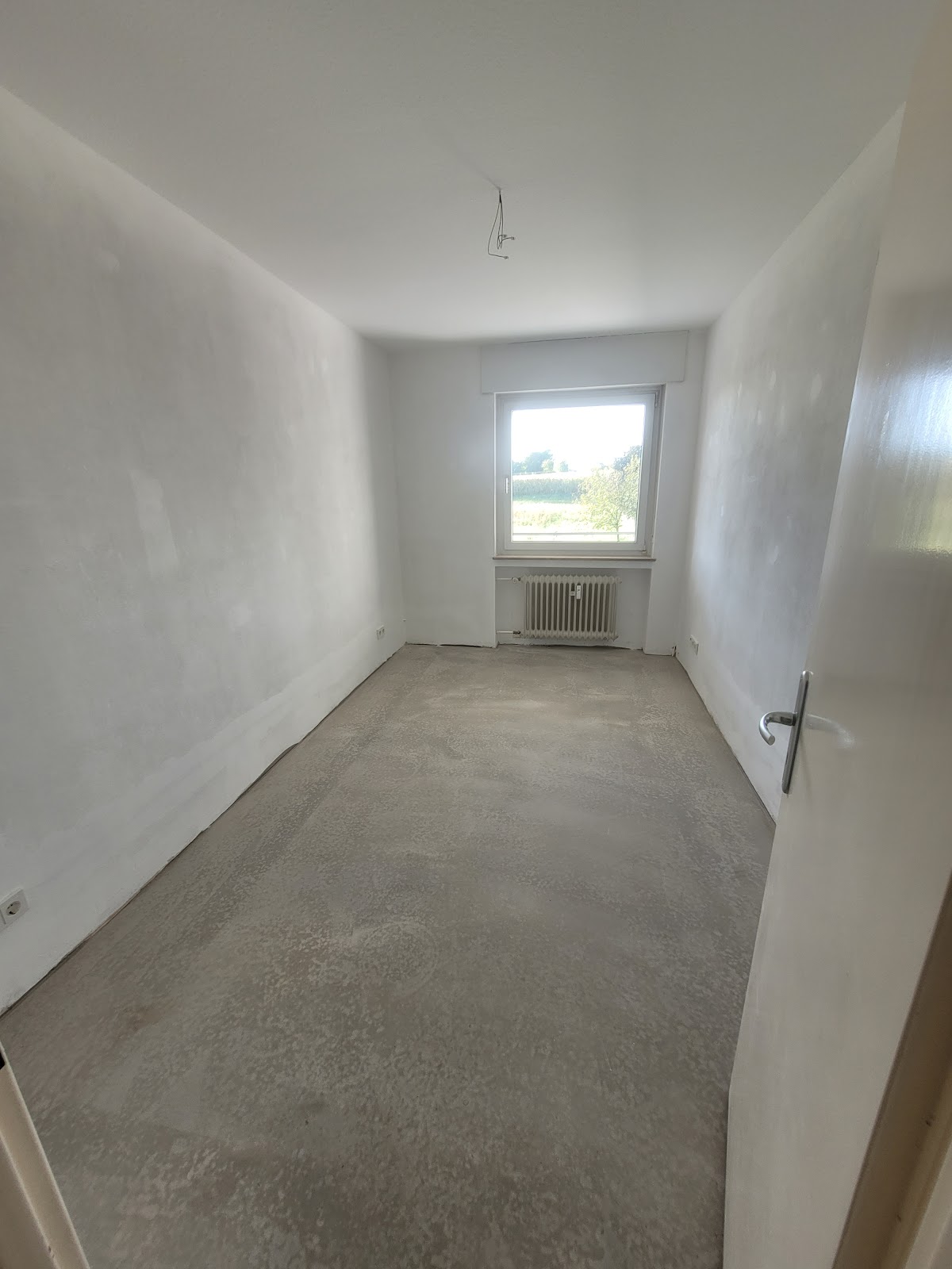 Wände und Decken sind für eine Tapezierung vorbereitet, sodass der neue Mieter frei in der Gestaltung der Räumlichkeiten ist. Auch der Bodenbelag in den Wohnräumen muss vor Einzug in Eigenleistung verlegt werden. In Küche und Flur ist ein neuer Vinylboden in Holzoptik verlegt.